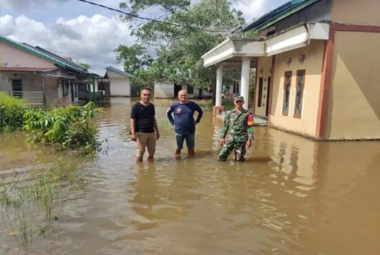 Untuk melihat langsung kondisi warganya, Kepala Desa Baning Kota Muryadi didampingi Babinsa dan Ketua RT meninjau lokasi banjir 3 Dusun di Desa Baning Kota.