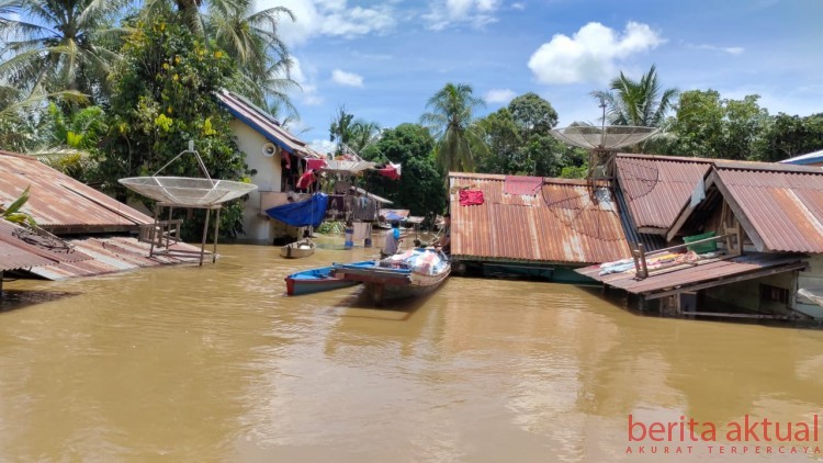BERITA-AKTUAL.COM – Tak hanya Kota Putussibau Kabupaten Kapuas Hulu yang mengalami banjir besar. Sejumlah daerah di Kecamatan Serawai, Kabupaten Sintang, juga mengami hal serupa. Bahkan banyak rumah warga hanya tampak atapnya saja karena terendam banjir.