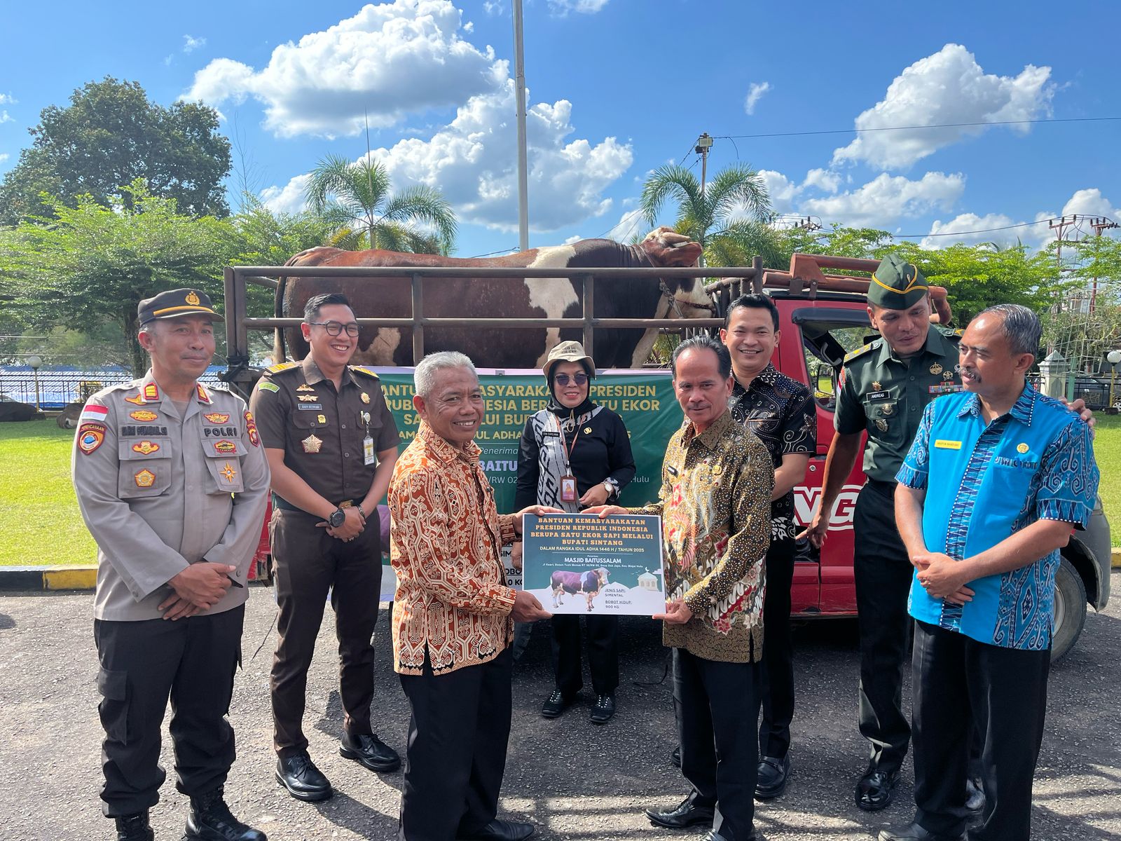 Sapi kurban bantuan Presiden tersebut diserahkan langsung oleh Bupati Sintang, Gregorius Herkulanus Bala kepada Ketua Pengurus Masjid Baitussalam, Misran di halaman Kantor Bupati Sintang, Kamis 5 Juni 2025.