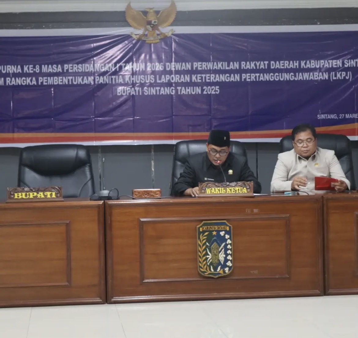 SINTANG – DPRD Kabupaten Sintang kembali menggelar Rapat Paripurna dengan agenda pembentukan Panitia Khusus (Pansus) Laporan Keterangan Pertanggungjawaban (LKPj) Bupati Sintang Tahun Anggaran 2025, Jumat (27/3/2026) siang.