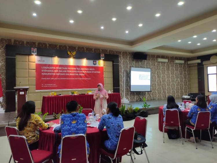 Lokakarya Kolaborasi Multi Stakeholder dilaksanakan Pemerintah Kabupaten Sintang bekerjasama dengan USAID ERAT. Kegiatan lokakarya yang diselenggarakan ini berfokus pada diskusi identifikasi dan pemetaan masalah atau kendala pelaksaan penurunan stunting di Bumi Senentang. Kegiatan tersebut dibuka Wakil Bupati Sintang Melkianus.