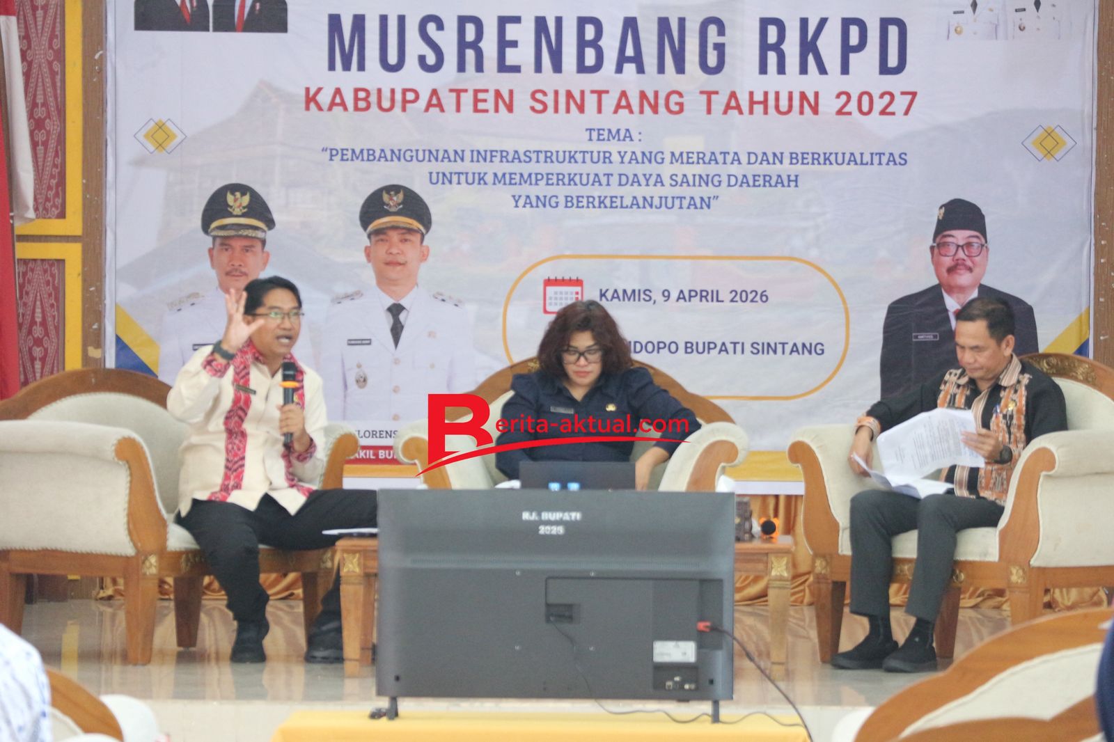 SINTANG – Kepala Badan Perencanaan Pembangunan Daerah (Bappeda) Kabupaten Sintang, Kurniawan, memaparkan sejumlah poin penting dalam laporan pembukaan Musyawarah Perencanaan Pembangunan (Musrenbang) Rencana Kerja Pemerintah Daerah (RKPD) Tahun 2027, yang digelar di Pendopo Bupati Sintang, Kamis 9 April 2026.