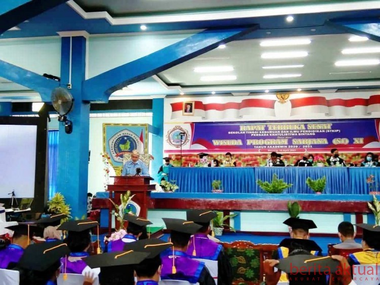 “Saya yakin, dengan pembangunan pendidikan yang optimal, akan membawa Kabupaten Sintang yang lebih maju dan sejahtera” kata Arbudin Staf Ahli Bidang Kemasyarakatan dan Sumber Daya Manusia ketika membacakan sambutan Bupati Sintang saat menghadiri Wisuda Ke-XI STKIP Persada Khatulistiwa Sintang, Sabtu 10 April 2021.