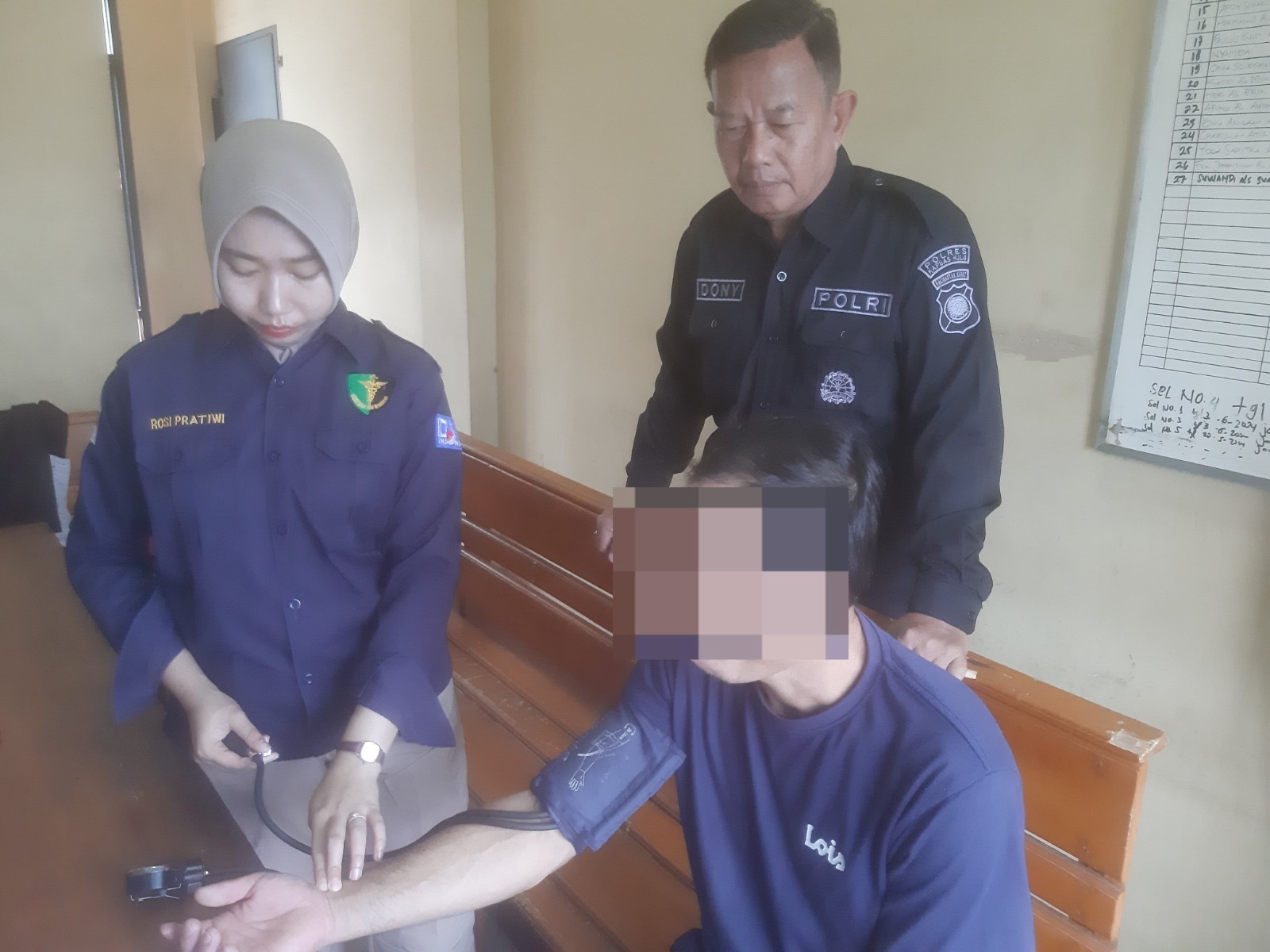 Total ada 35 tahanan yang terdiri dari 34 laki-laki dan 1 perempuan mendapatkan pemeriksaan kesehatan dari tim medis. Mereka diperiksa tim medis yakni Briptu Ade Agus Rabithah, A.Md. Kep, dan Pengatur Rosi Pratiwi, A.Md. KG.