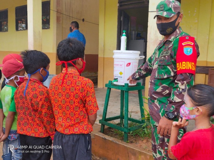 BERITA-AKTUAL.COM – Banyak cara bisa dilakukan untuk memberikan sosialisasi tentang Protokol Kesehatan (Prokes) untuk mencegan penularan corona. Salah satunya seperti yang dilakukan Babinsa Koramil Serawai, Serda Rantoni dengan menyambangi anak – anak SDN 1 Nanga Serawai, Sabtu pagi 29 Mei 2021.