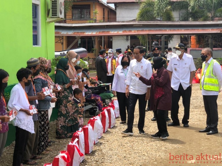 Penyerahan bantuan dilakukan langsung oleh Presiden Joko Widodo didampingi Menteri Sosial Tri Rismaharini berlangsung di Dankesyah, Rabu 8 Desember 2021.