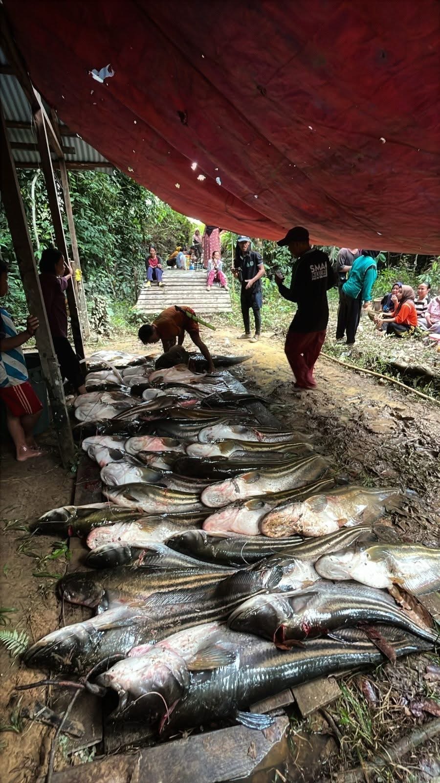 Dalam panen tersebut, puluhan ikan tapah berhasil dibawa pulang oleh warga. Adapun total tangkapan ikan tapah tersebut mencapai ratusan kilogram. Banyak diantara ikan tapah tersebut berukuran raksasa.